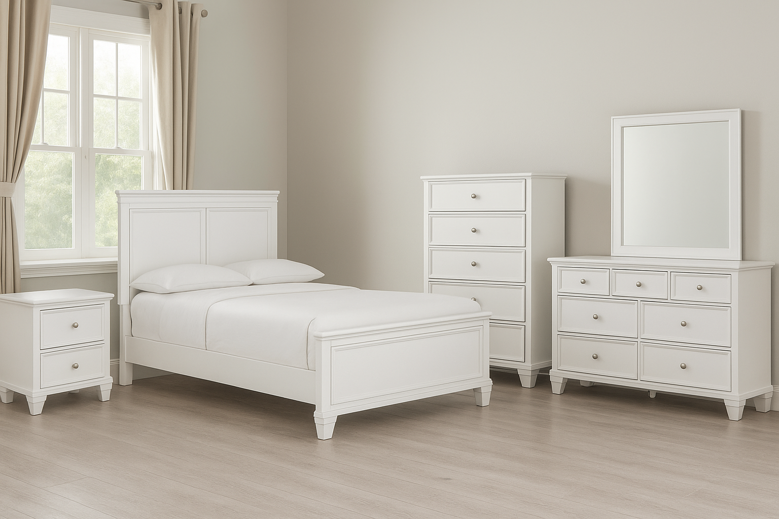 Bring timeless charm and functionality to your bedroom with the Fortman White Bedroom Collection. This complete set includes: