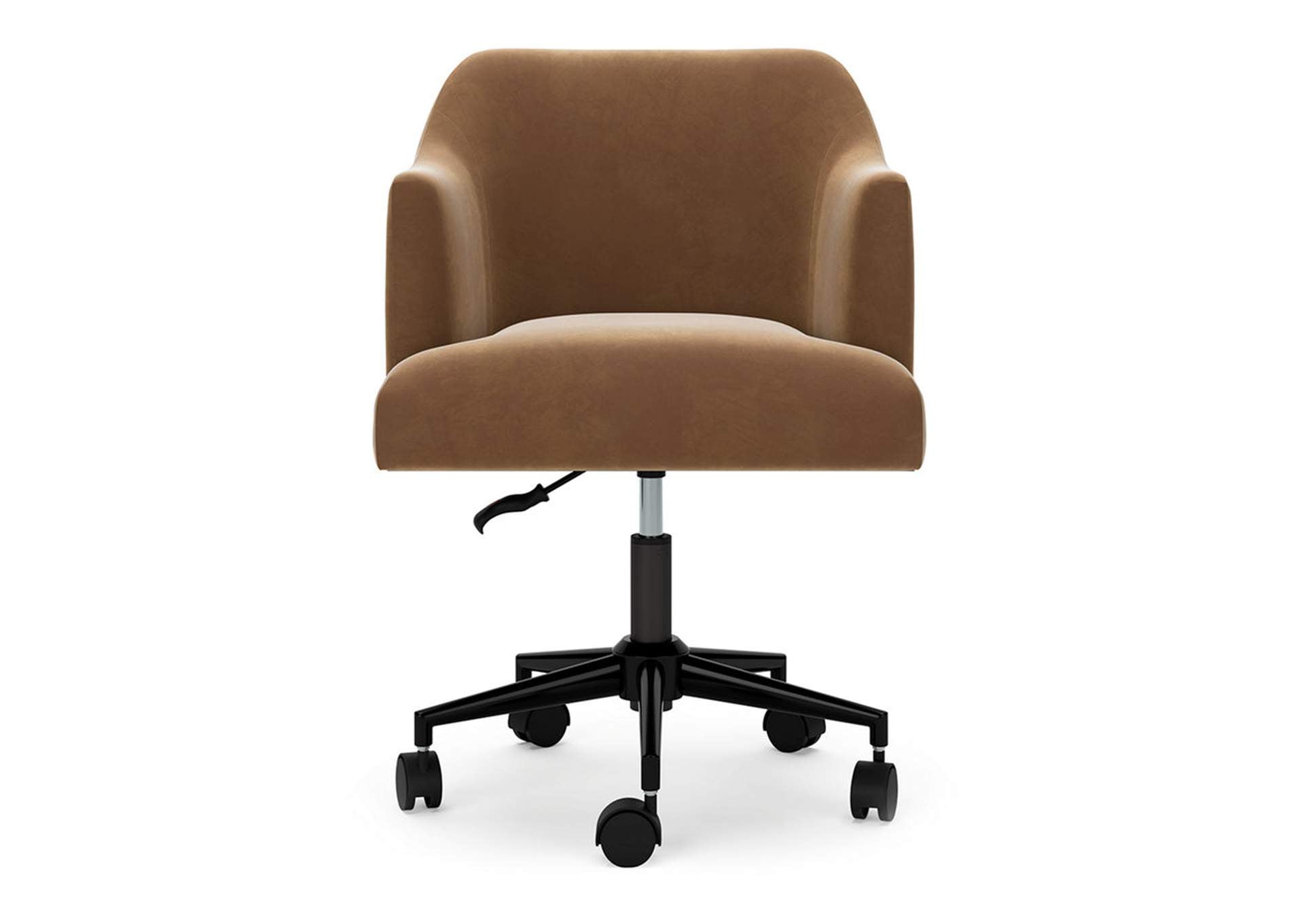 Details & OverviewThis home office desk chair expertly blends modern form and function. Velvety soft to the touch, its retro-inspired upholstery lends a subtly eclectic character. The casters and 360-degree swivel keep you mobile and social as you work. It's a stylish home office staple in the making.