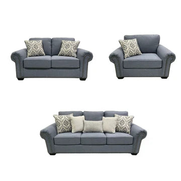 Elevate your living space with the Meharry Sofa Set, a blend of timeless charm and modern comfort. This 3-piece collection includes a spacious sofa, a cozy loveseat, and a generously padded chair — all wrapped in a calming blue-gray upholstery that adds a subtle pop of color to any room.