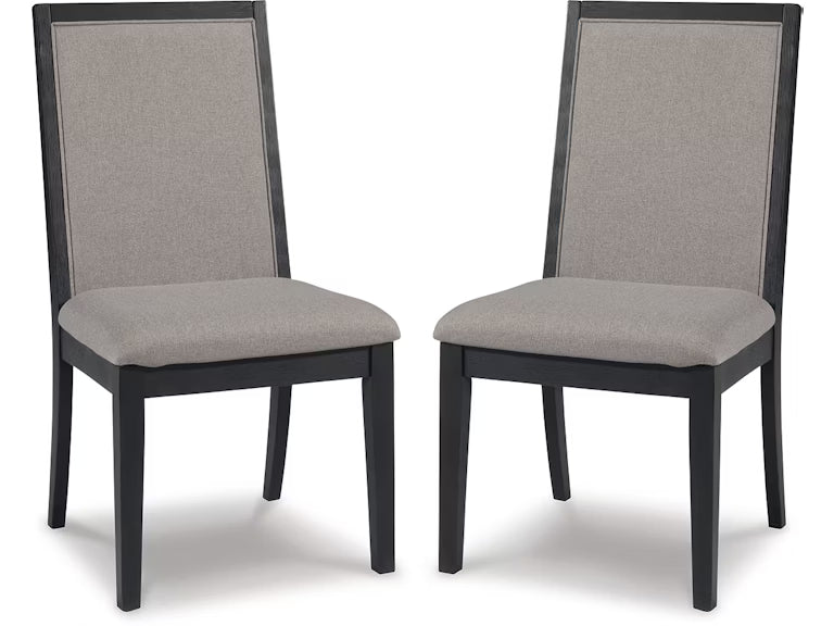 The Foyland Dining Upholstered Side Chair brings modern sophistication to the table. With its sleek black frame and soft gray fabric seat, it strikes a perfect balance between style and comfort. Ideal for contemporary dining spaces that value both design and durability.
