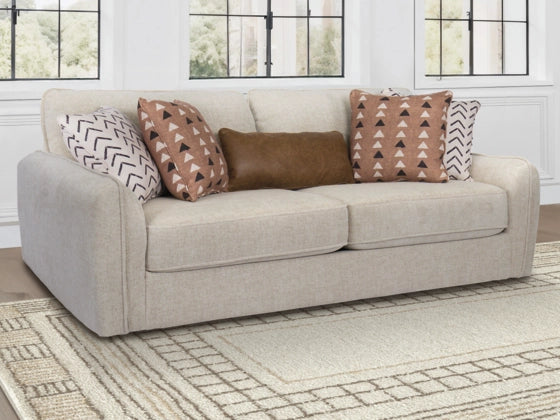 This gorgeously crafted sofa combines classic design with modern comfort. The reversible cushions and elegant details create an inviting atmosphere, while high-quality foam cushions provide ongoing support. Decorative accent pillows, including a sophisticated faux leather lumbar pillow, add the perfect finishing touch to this timeless piece.