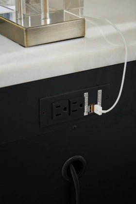 Details & OverviewFor those who love the classic profiles of traditional design—but want to forego the overly formal details—behold the Welltern nightstand. A natural white marble top and saber legs add distinctive touches to this beautiful take on urban revival design. The rich layered black finish on its textured wood grain surface with rubbed-through edges offers a subtle sense of gently aged charm. An integrated power outlet and USB charging keep your devices energized all evening long.