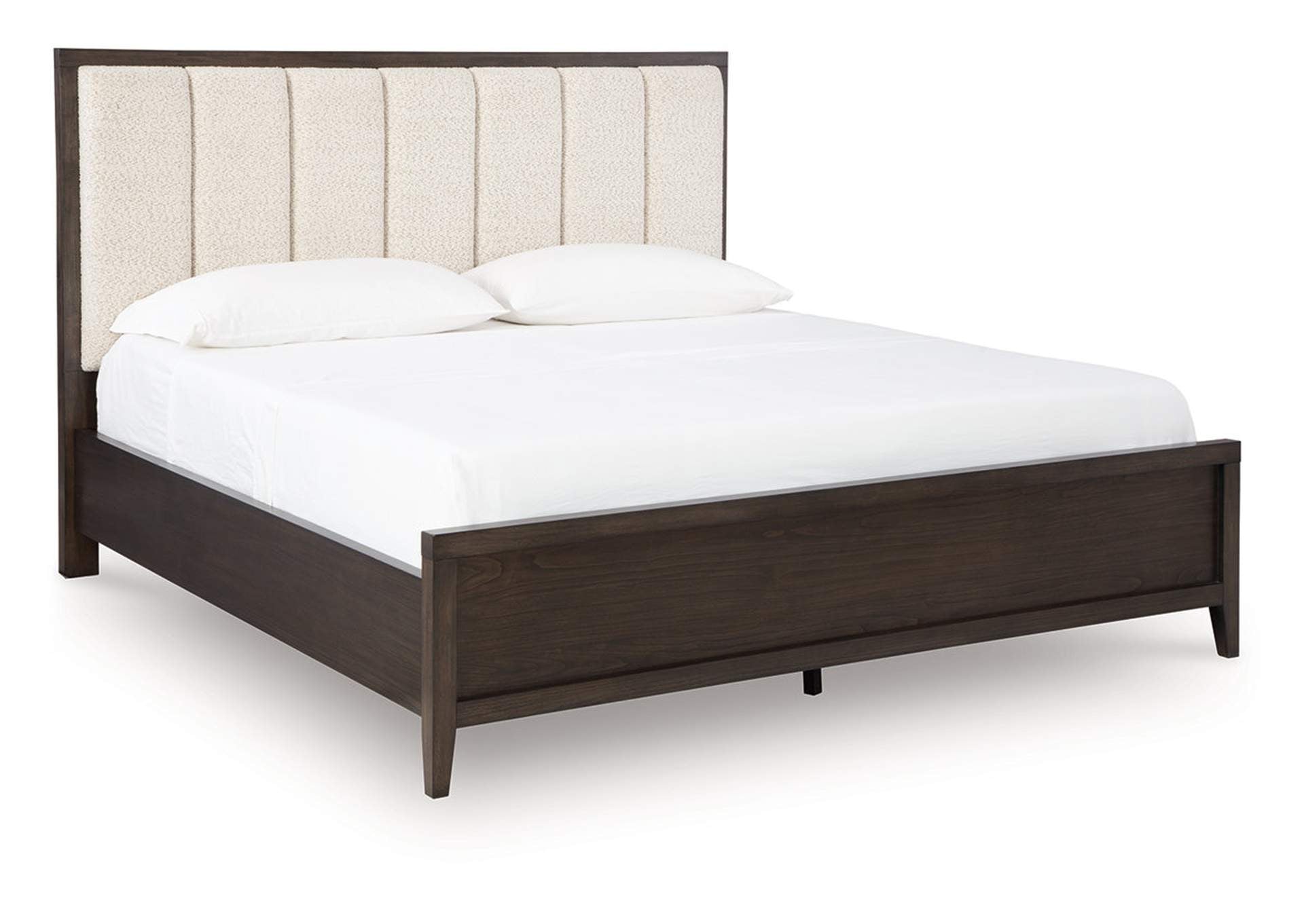 Create your ideal sanctuary with this bedroom set. The dark espresso brown finish and clean lines are undeniably contemporary, but the attitude is more relaxed—our interpretation of metropolitan casual style. An off-the-floor design with tapered legs beautifully elevates the mood. Spacious drawers with ridged metal bar pulls keep essentials organized. Whether you're starting your day or winding down, this stylish piece provides the perfect backdrop.