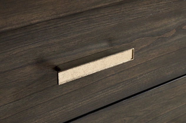 Create your ideal sanctuary with this nightstand. The dark espresso brown finish and clean lines are undeniably contemporary, but the attitude is more relaxed—our interpretation of metropolitan casual style. An off-the-floor design with tapered legs beautifully elevates the mood. Spacious drawers with ridged metal bar pulls keep essentials organized. And charging your devices is easier than ever, thanks to the USB ports conveniently located in the top. Whether you're starting your day or winding down, this stylish piece provides the perfect backdrop.